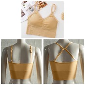 後ろのショルダー紐はクロスにもなれる2way仕様のデザイン、大胆な背中開き服はストラップでアクセ感覚に飾り、シースルートップスのインナーとしてもオススメ