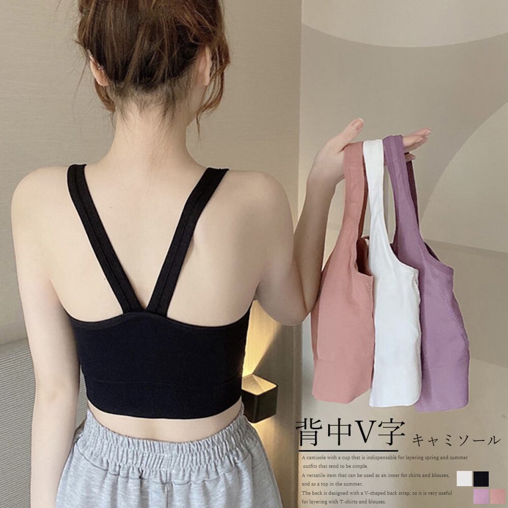 へそ出し インナートップ レディース 背中V字 ショート丈 ナイトウェア 揺れない チューブトップ ノンワイヤー 重ね着
