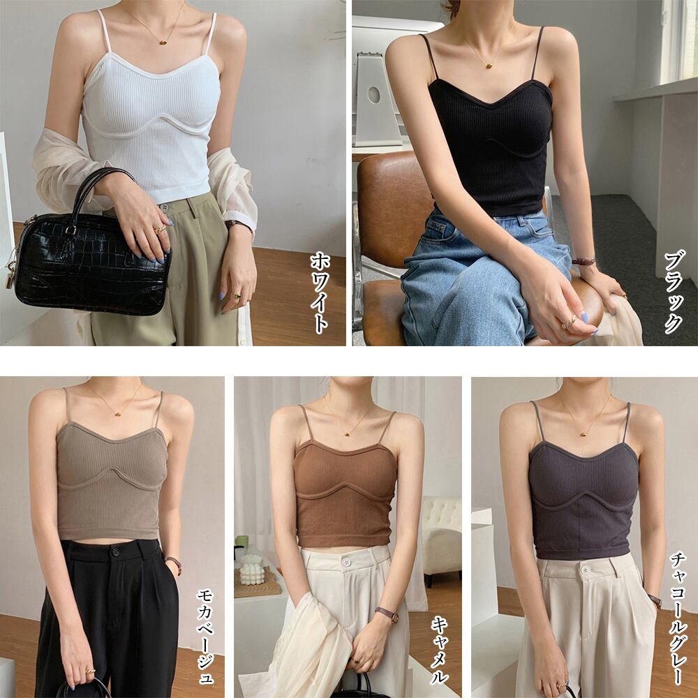 韓国風リブキャミ 春夏 キャミヨガ シンプルベアトップ