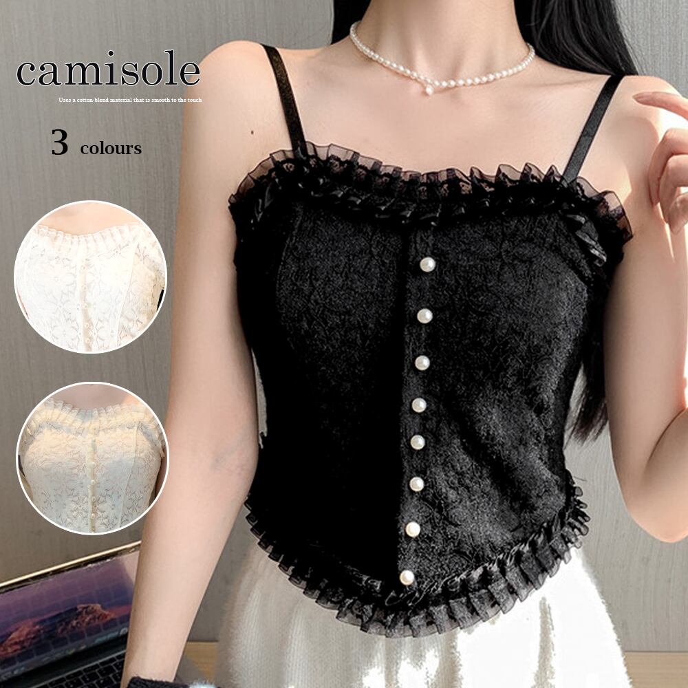 ブラ要らずに1枚で着られる総レースキャミソールです。