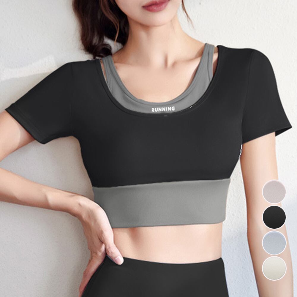 カップ付き スポーツウェア レイヤード ジムウェア テニス マラソン ランニングウェア バレエダンス フィットネスウェア