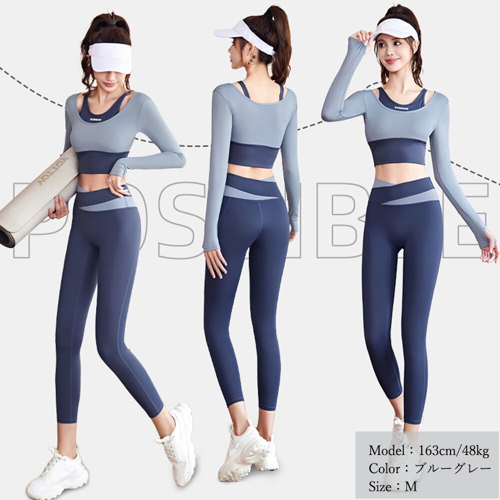 レディース オシャレ 指穴付き ランニング服 バイカラー無地ジムウェア 楽ちん フィットネス 運動着 韓国 ピラティス服
