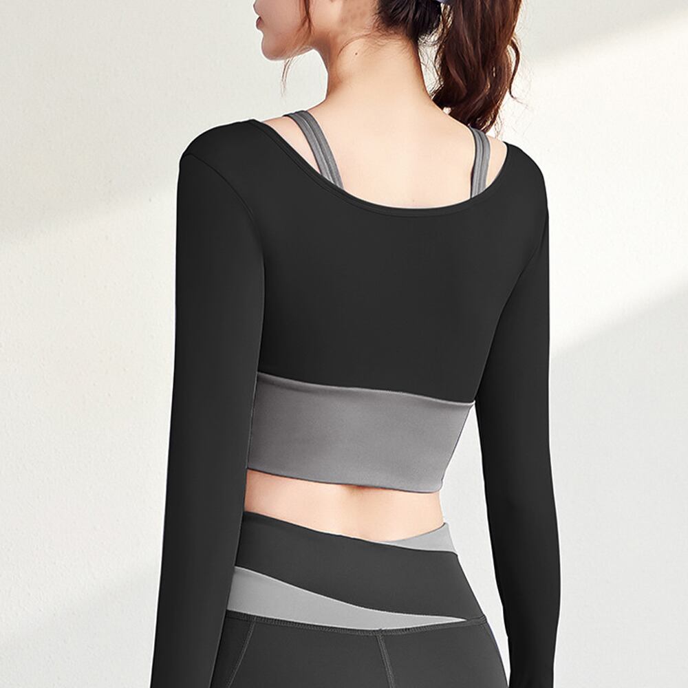 重ね着風のバイカラーデザインのカップ付きスポーツトップス