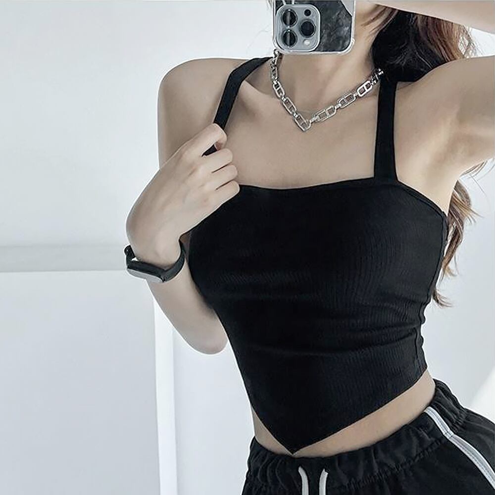レディース タイトキャミソール V裾 へそ出し フィット感 細身 着やせ 大人 オルチャン ダンス おしゃれ セクシー