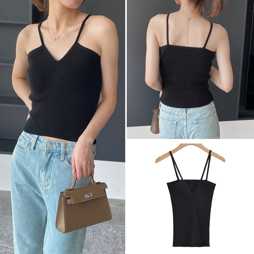 サマーニット きれいめ ニットキャミソール リブ編み 重ね着 インナーニット 伸縮性 着やせ 韓国風 肌見せ セクシー
