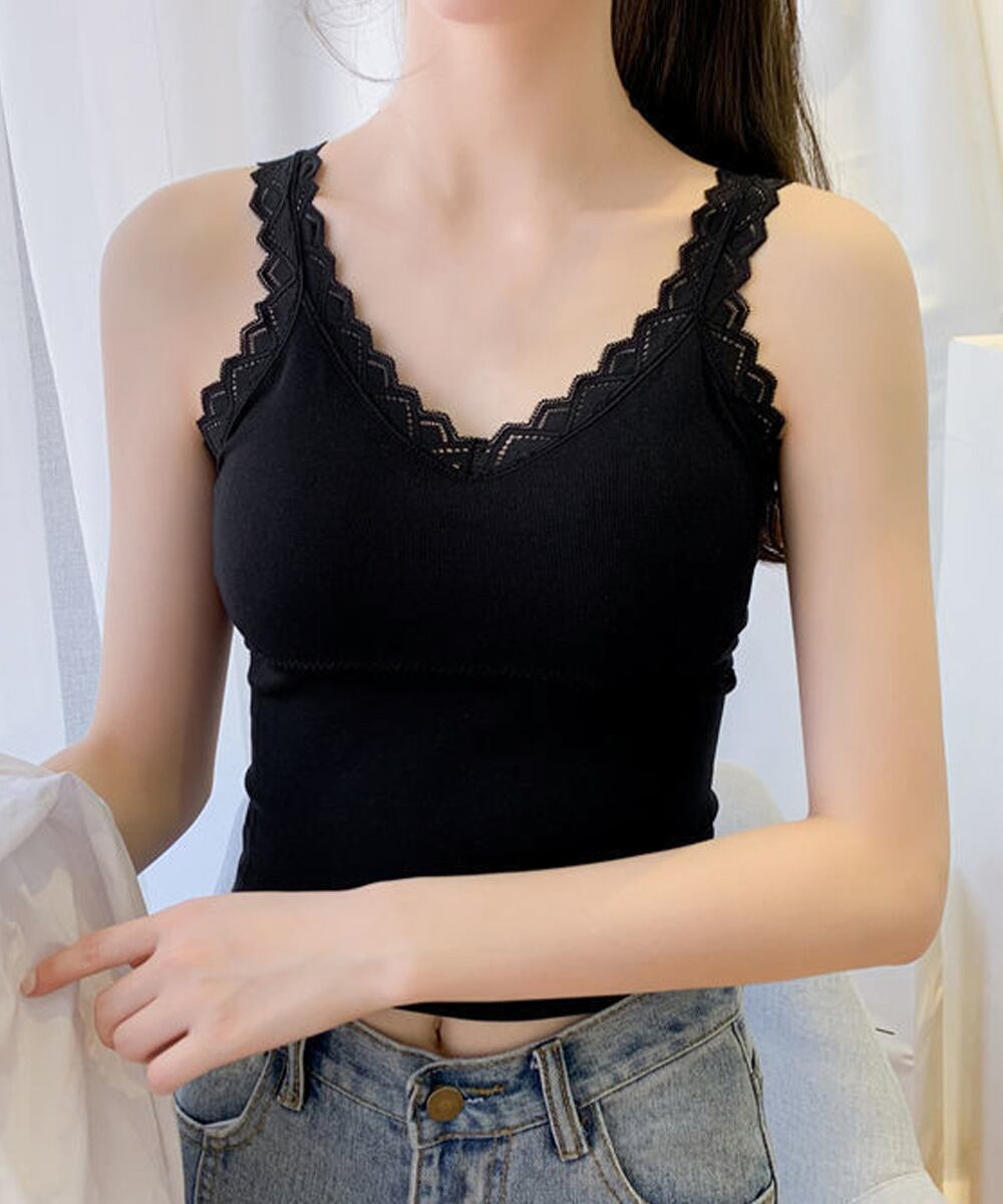重ね着 レースキャミソール レディース Vネックセクシー下着 ノースリーブ 肌着 韓国風 アンダーウェア シンプル