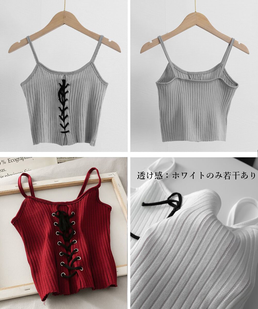 キャミソール レースアップ リブニット夏