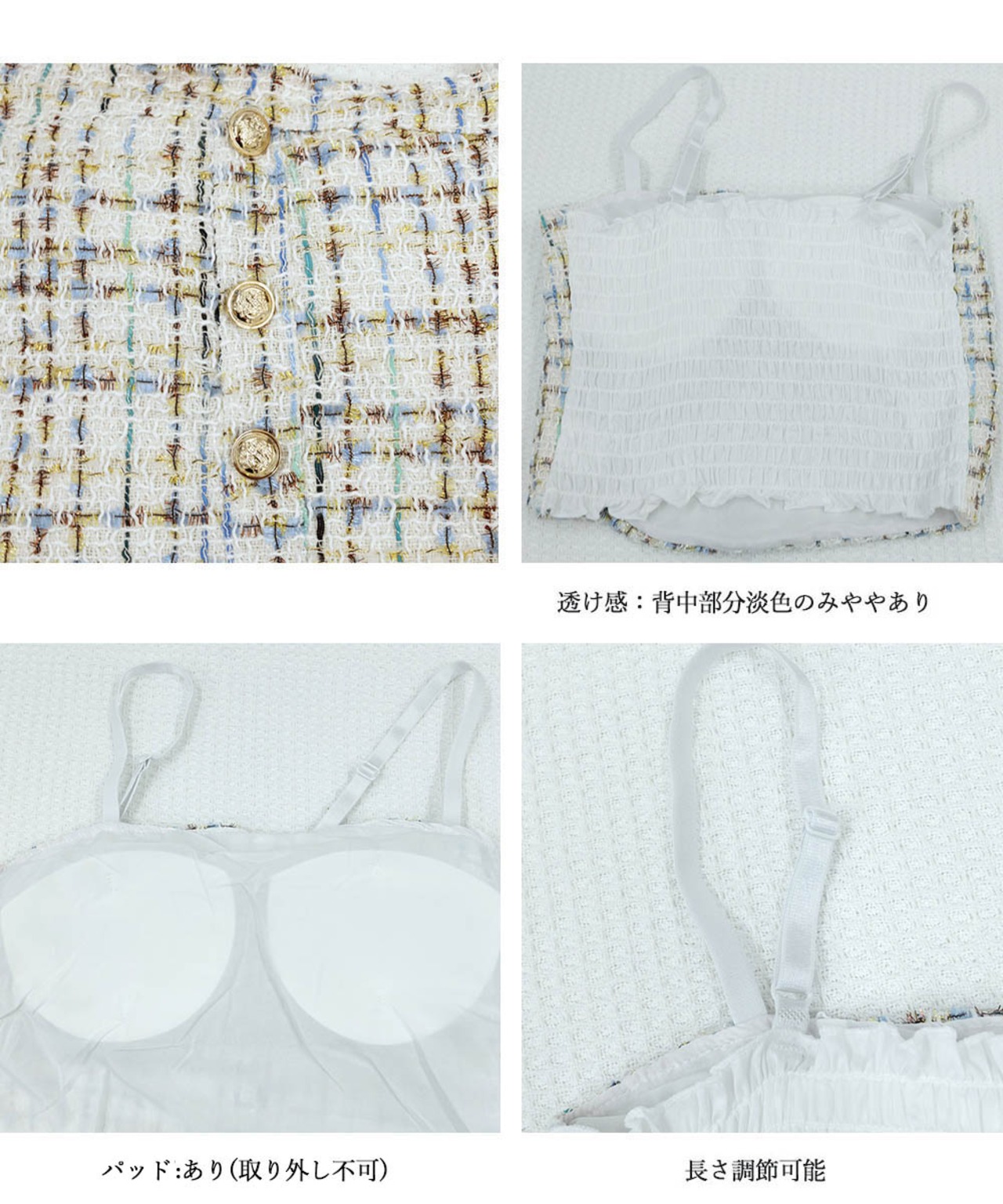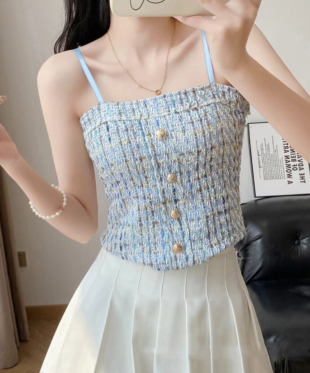 パッド付き ツイード風キャミソール韓国風