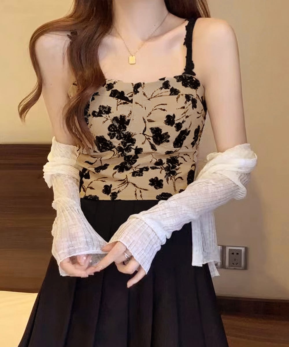 ブラトップ レディース バラ柄キャミブラ ショート丈 レトロビスチェ 重ね着インナーウェア 背中見せ ブラ一体型トップス