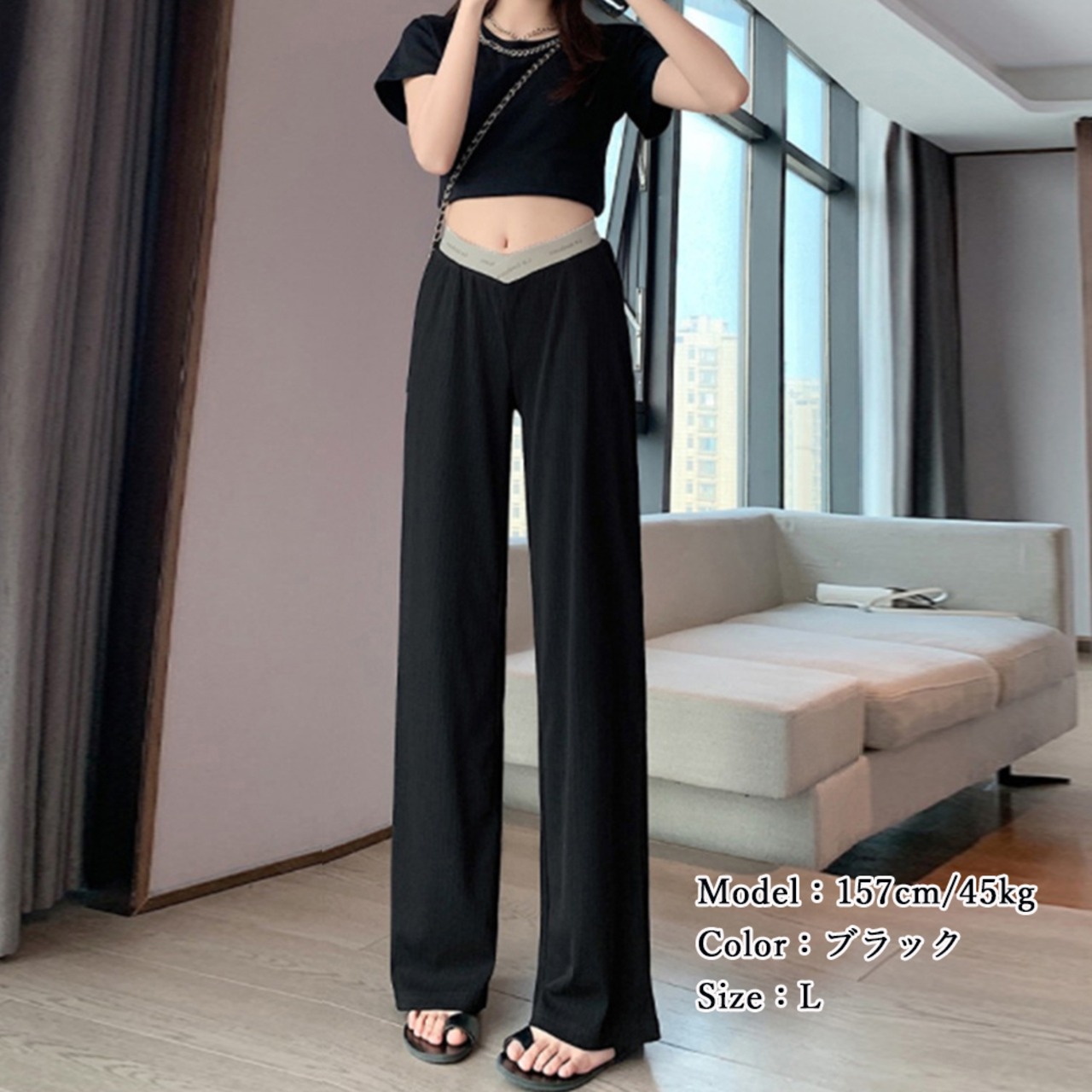 ローライズ・V字ウエストデザインなのでお腹を圧迫しないから安心