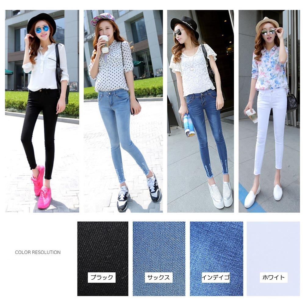 デニム パンツ レデイース ダメージ ジーンズ スリム スキニー デニム