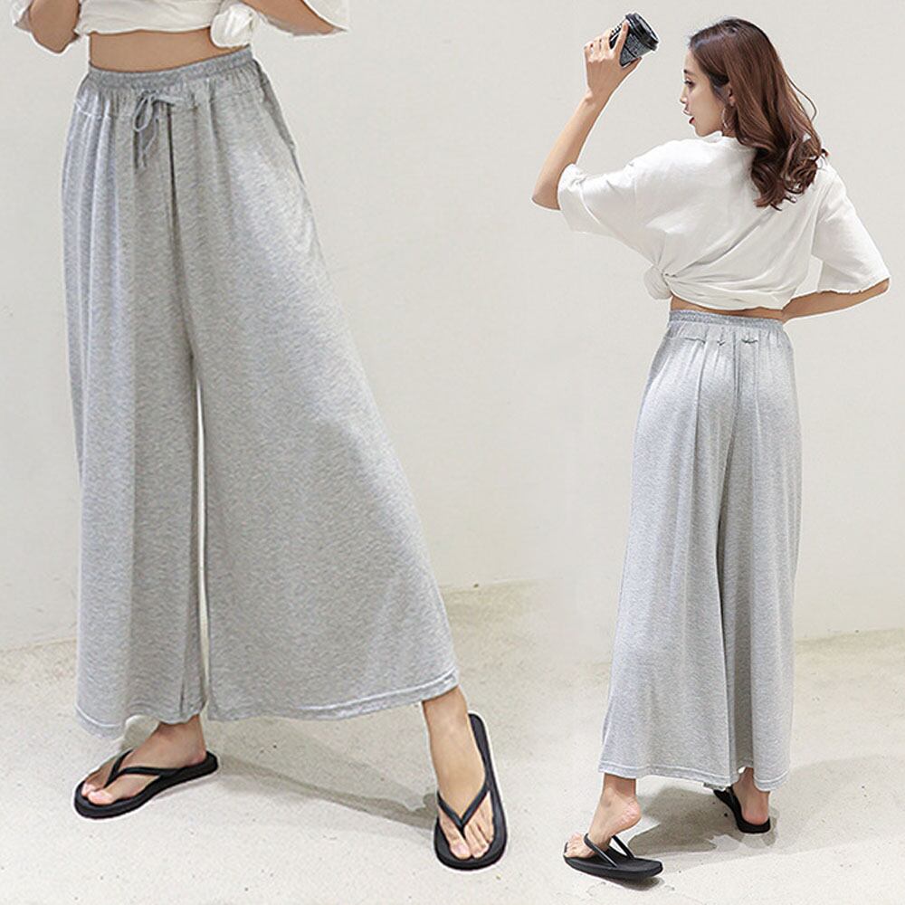 スカーチョ ハイウエスト ゆったりパンツ ウエストゴム 軽やかなフレアパンツ 春夏 スカンツ 体型カバー 美脚 無地薄手
