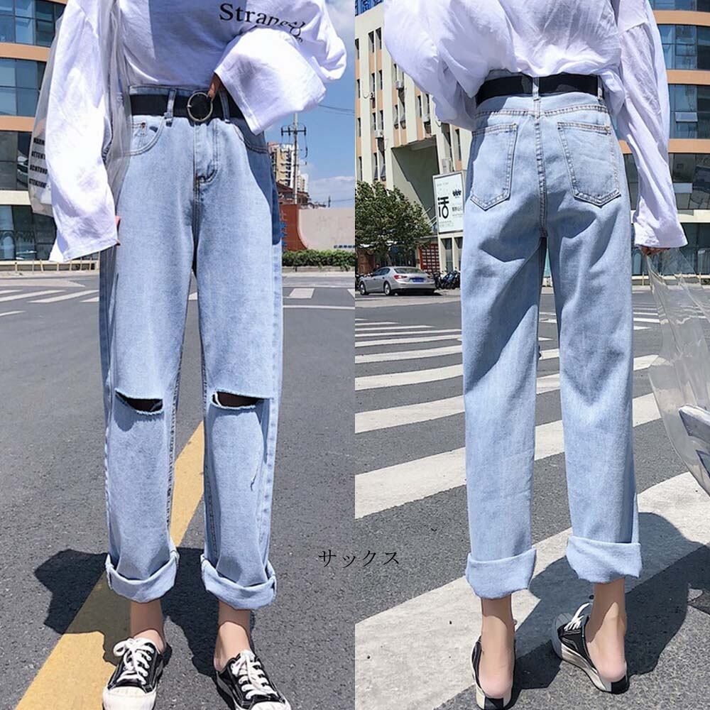 ダメージ デニムパンツ レディース ボーイフレンド デニム ハイウエスト