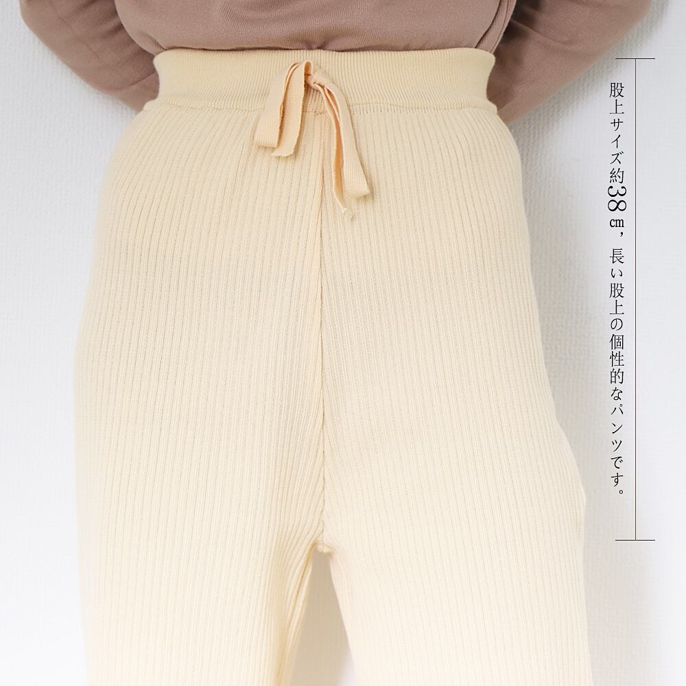 ニットパンツ レディース 秋冬 リブニット ワイドパンツ ロングパンツ