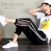 ラフでスポーティーな印象を与えるサイドラインパンツ