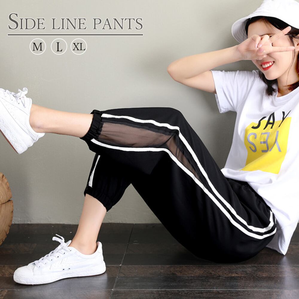 サイドライン パンツ レディース ジャージパンツ ウエストゴム ヨガパンツ