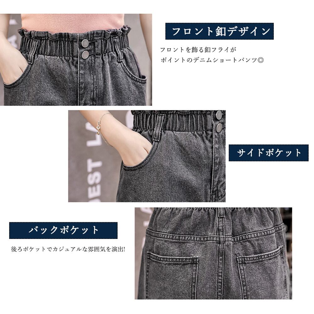 フロントを飾る釦フライがポイントのデニムショートパンツ