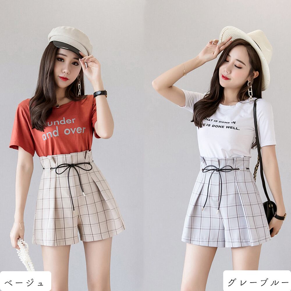 チェック柄 ショートパンツ レディース ハイウエスト ホットパンツ 夏 短パン