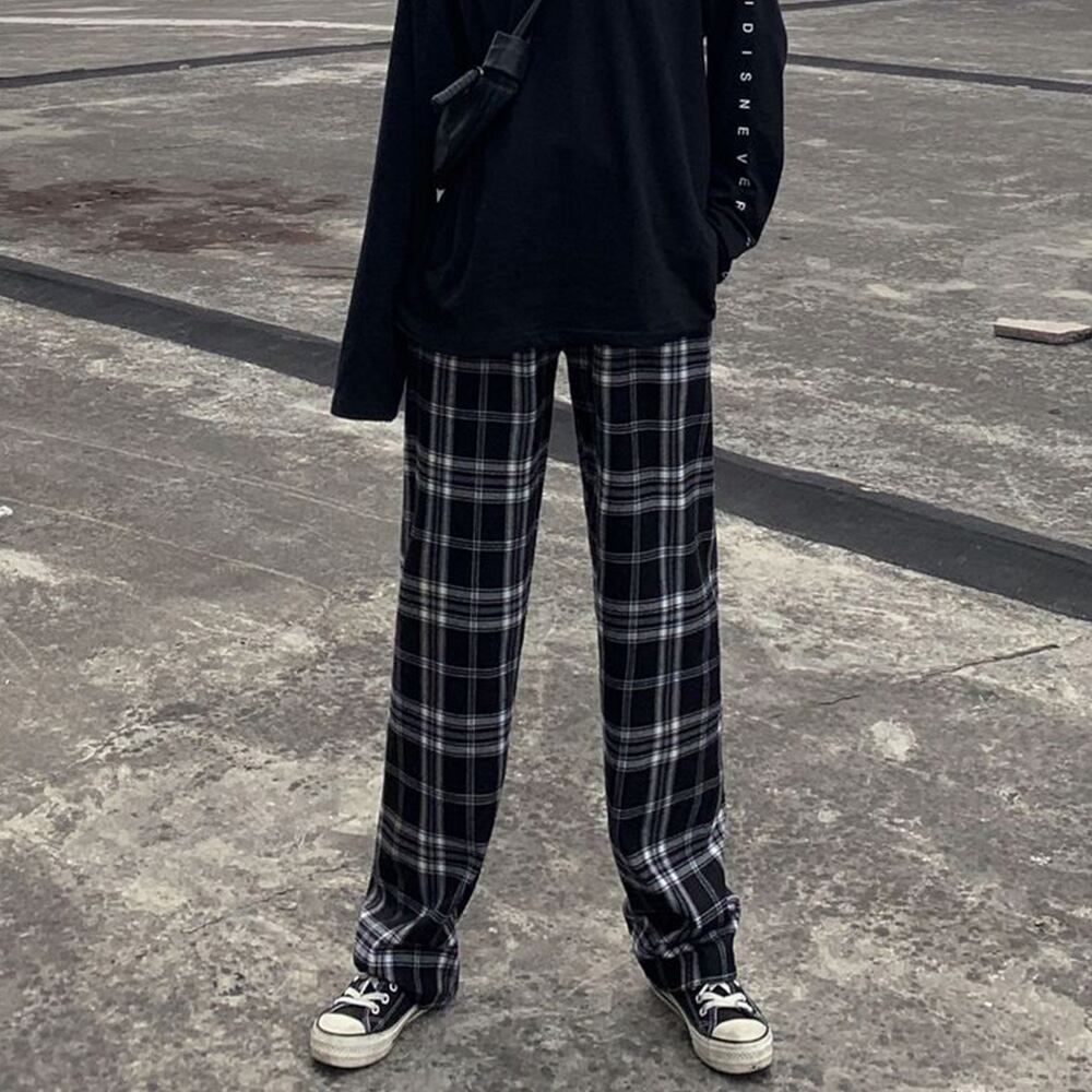 チェック柄 ワイドパンツ レディース ハイウエスト ストレートパンツ ゆったり