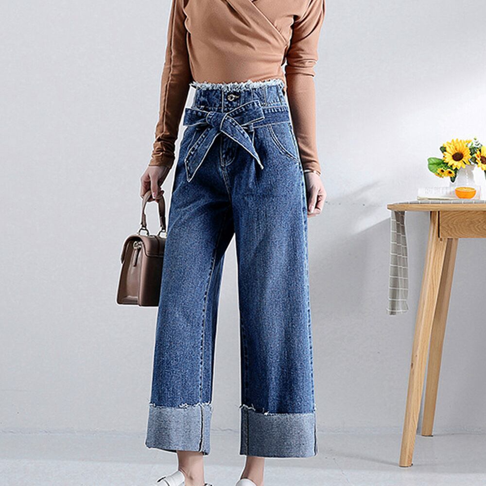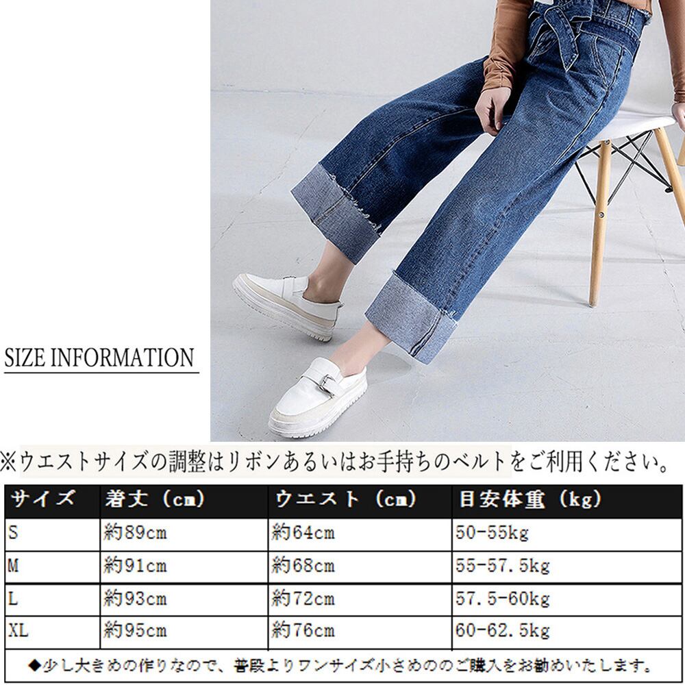 ロールアップ デニムパンツ レディース ハイウエスト ゆったり ガウチョパンツ