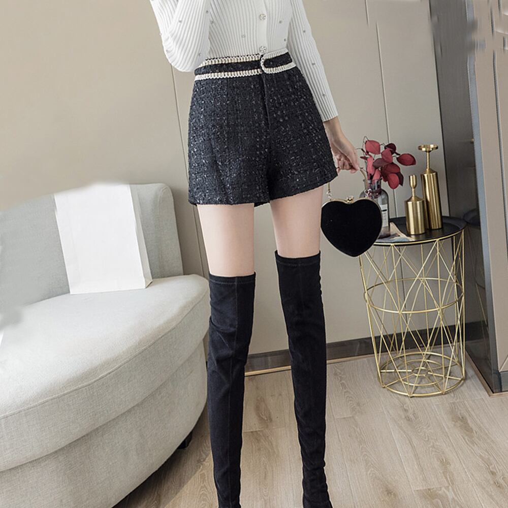 ショートパンツ レディース ツイード風ショートパンツ ハイウエスト 短パン