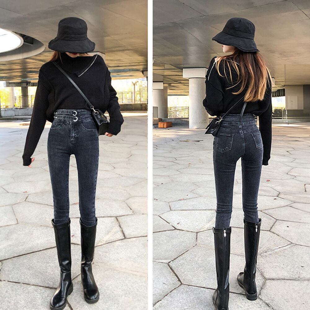 デニムパンツ レディース ハイウエスト スキニーパンツ 細身 ボトムス ストレッチ ジーパン 着やせ 韓国風 美脚見せ