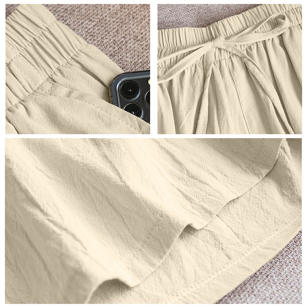 ショートパンツ ハーフパンツ 薄手 ウエストゴム ゆったり 楽ちん ボトムス ショーパン 無地 綿麻 パンツ 着やせ ボトムス