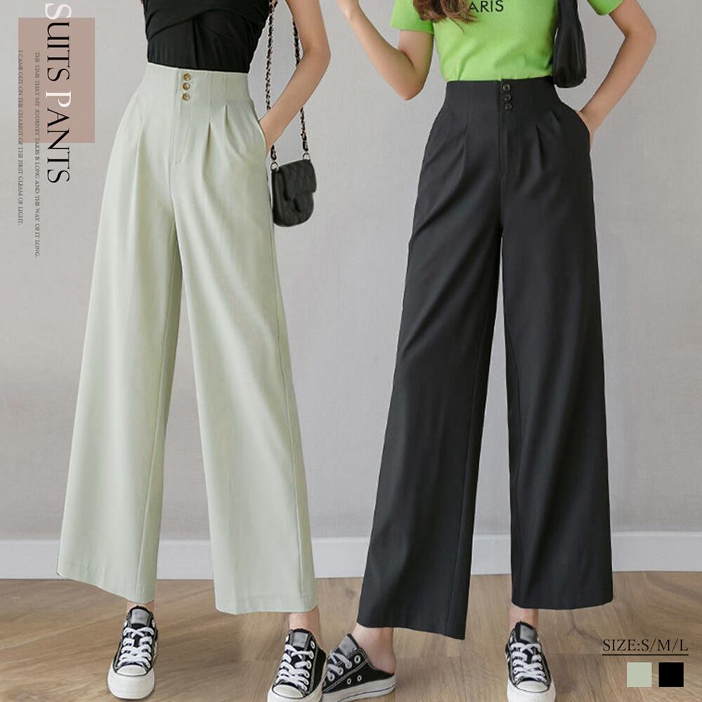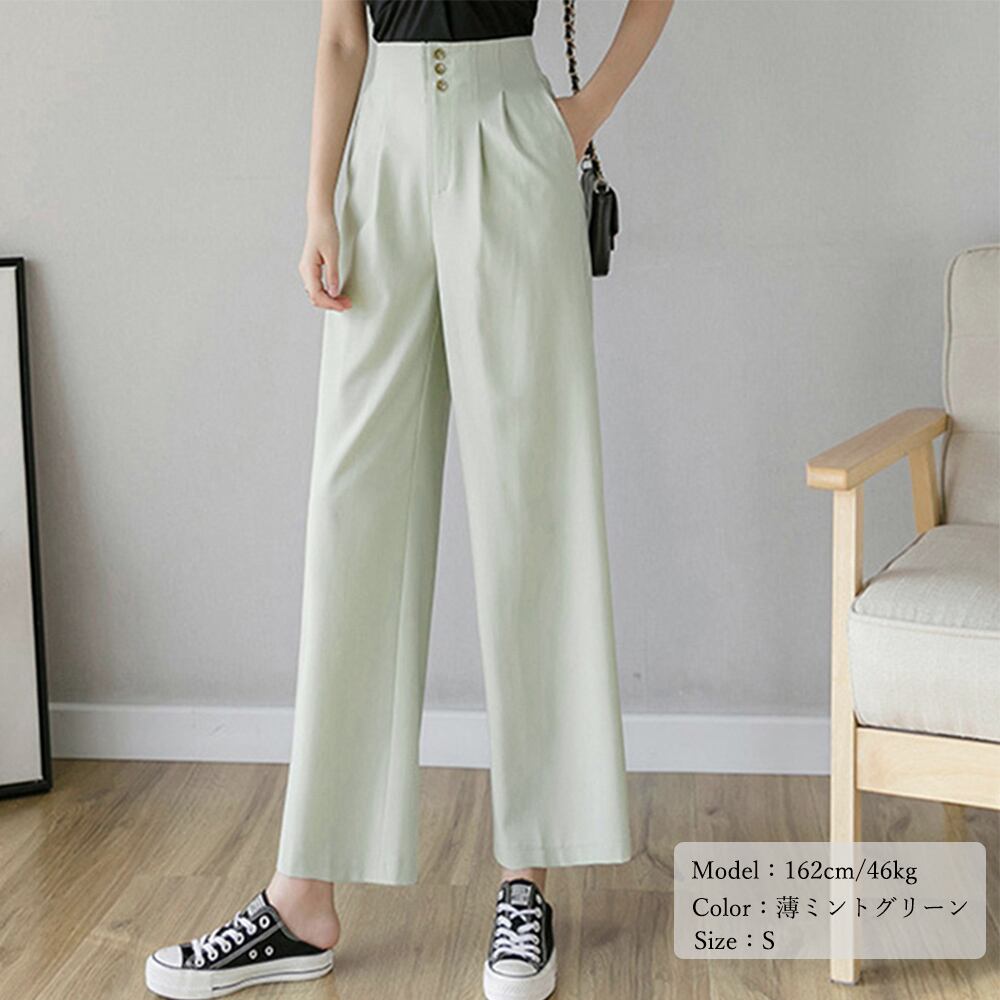 カジュアル 体型カバー オフィス セミワイドパンツ ロング丈 9分丈 ポケット付き ゆったり スーツパンツ 美脚ボトムス 春夏 大人おしゃれ 通勤 ロングパンツ無地