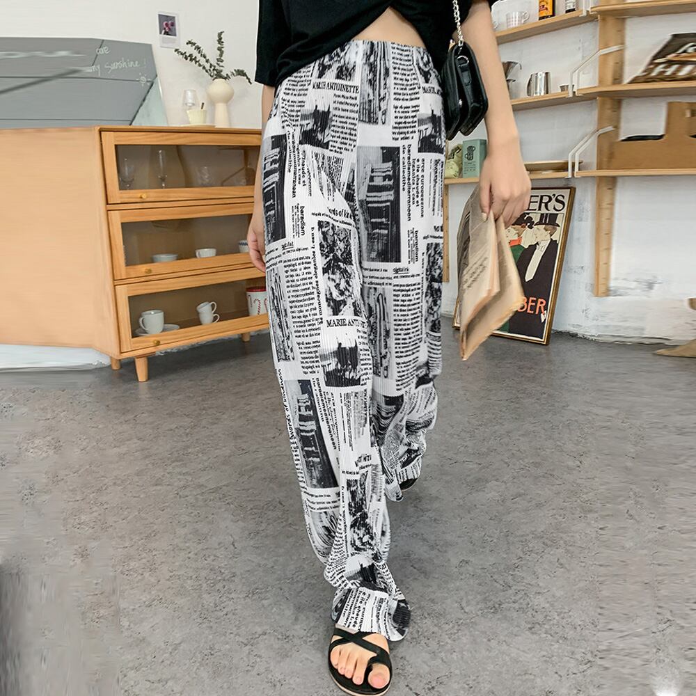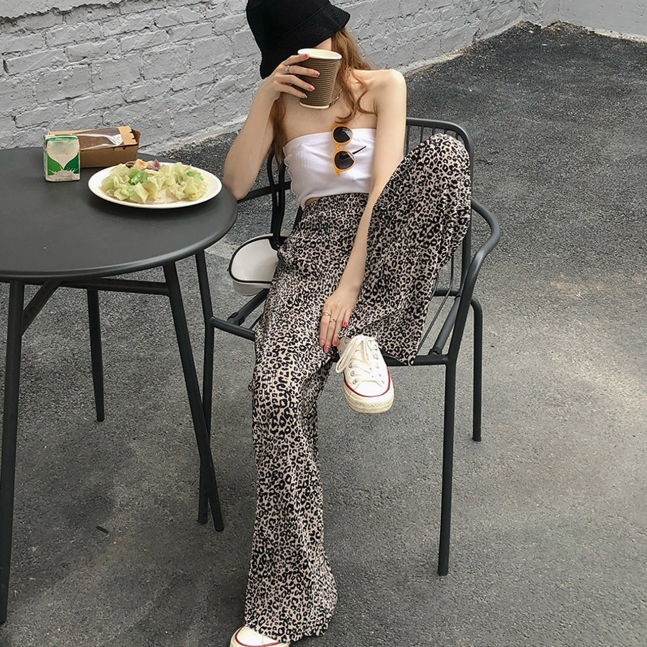 ハイウエスト ストレートパンツ カジュアル ロングパンツ リラックス ウエストゴム 着やせ ヒョウ柄パンツ