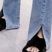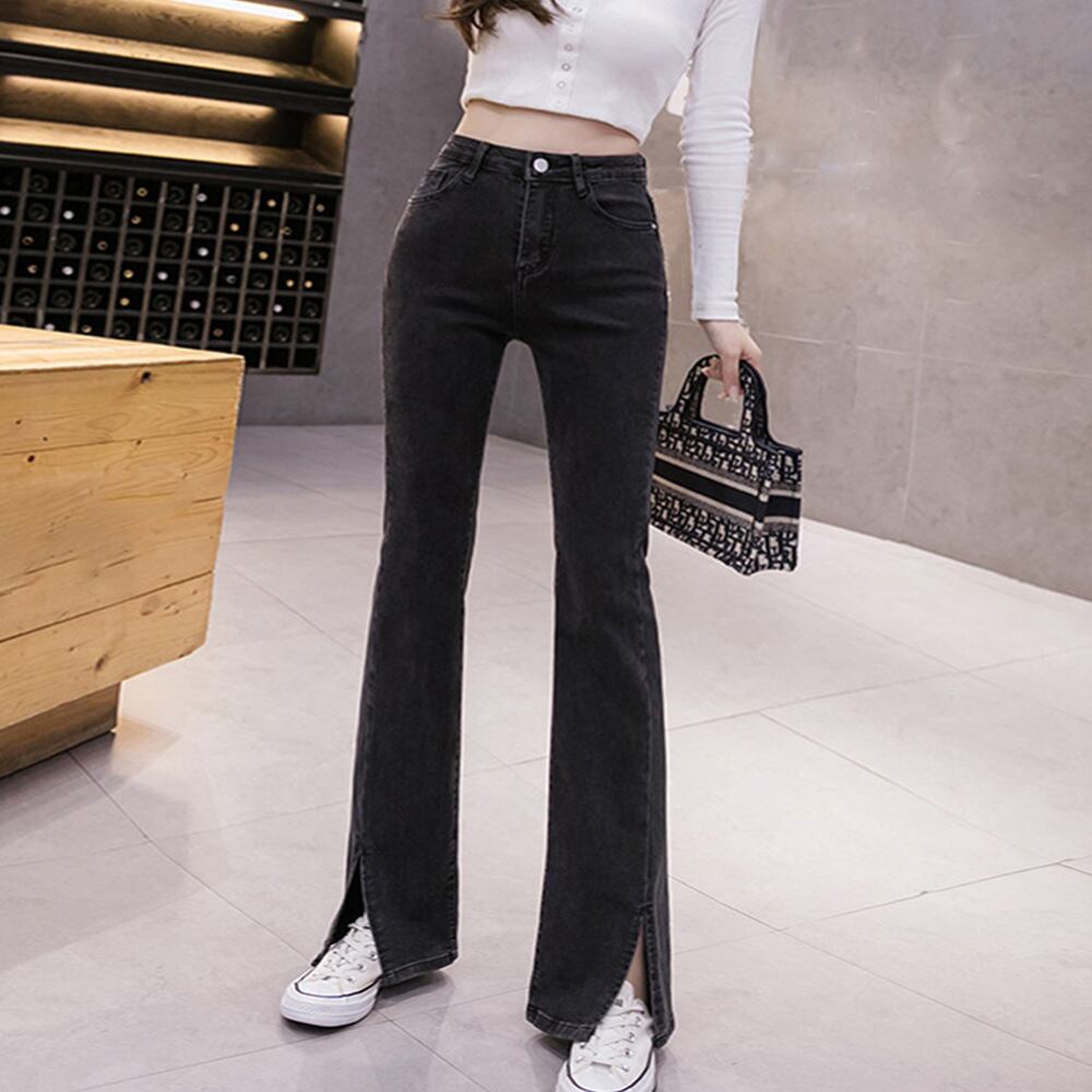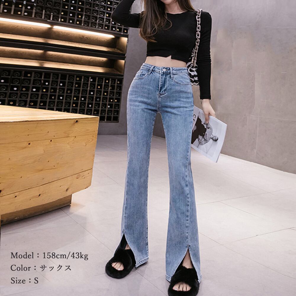 スキニーパンツ 裾スリット ブーツカットパンツ ハイウエスト ストレッチジーンズ 着やせ