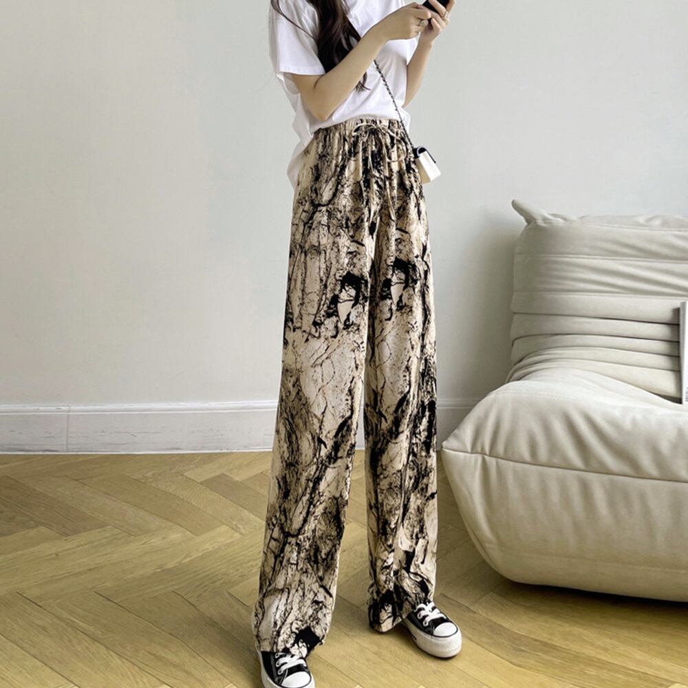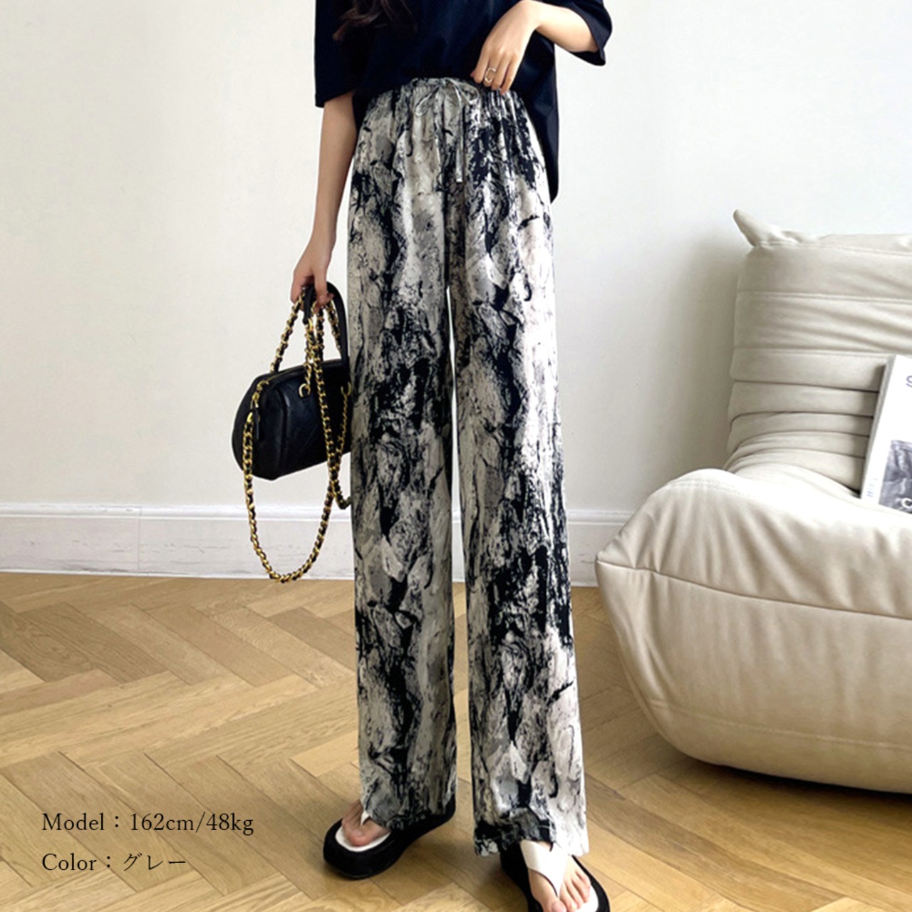 プリント リラックスパンツ ムラ染め 薄手 ルームウェア 部屋着パンツ ウエストゴム イージーパンツ ルーズパンツ