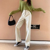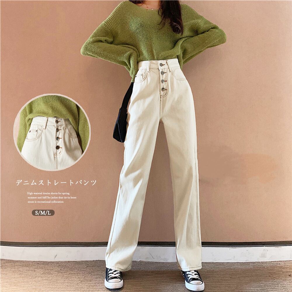 デニム ストレートパンツ ジーンズ 美尻 美脚 着やせ ジーパン カジュアル ワイトデニム 韓国 オールシーズン ボトムス