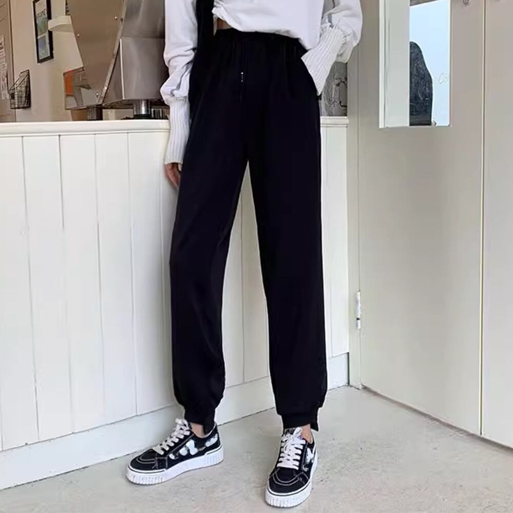 薄手 ウエストゴム ロングパンツ 体型カバー ゆったり 韓国ファッション カジュアルパンツ ハイウエスト ジョガーパンツ