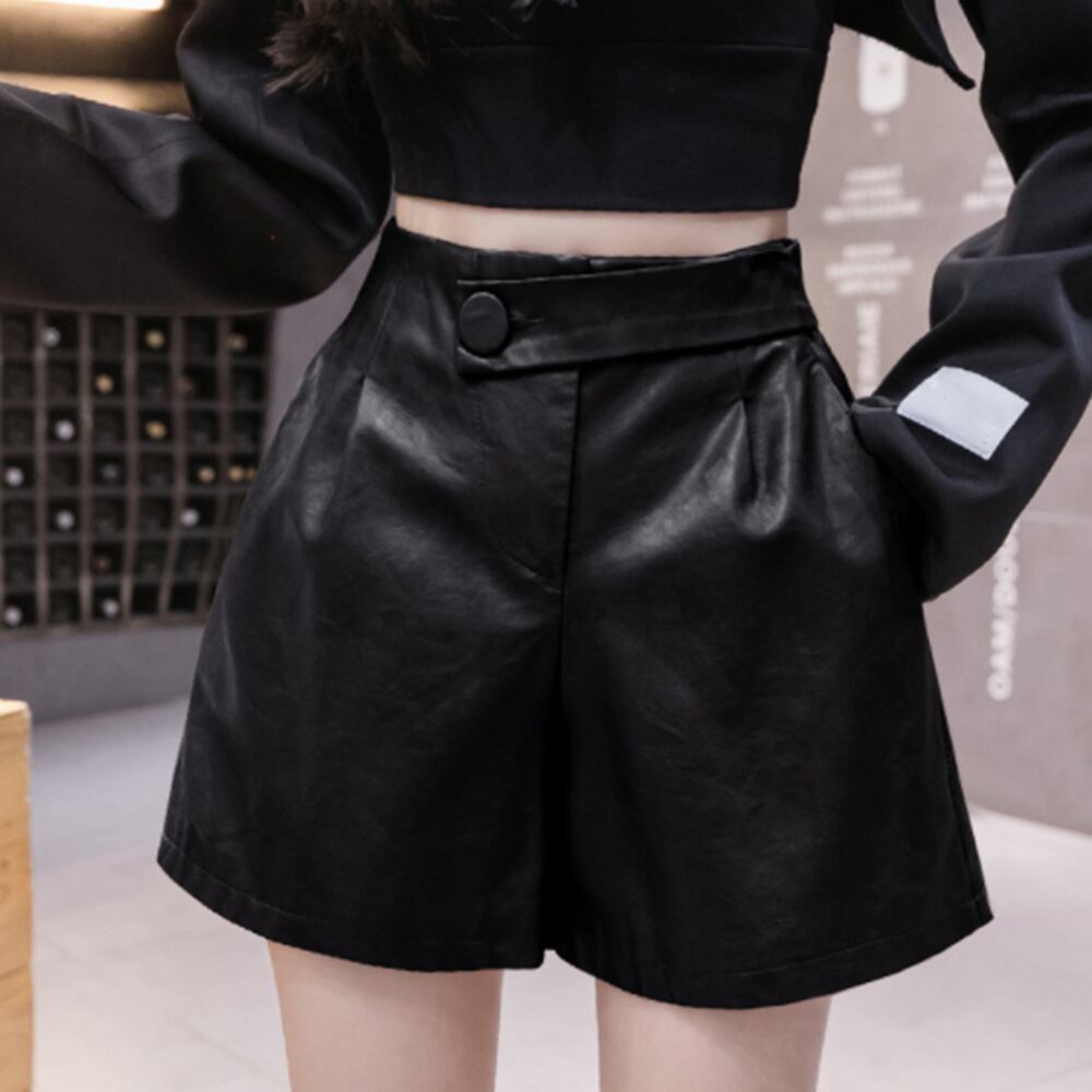 PUレザーパンツ ハイウエスト 春秋冬 ショーパン らくちん 裾広 ポケット付き キュロット 美脚シルエット ボトムス