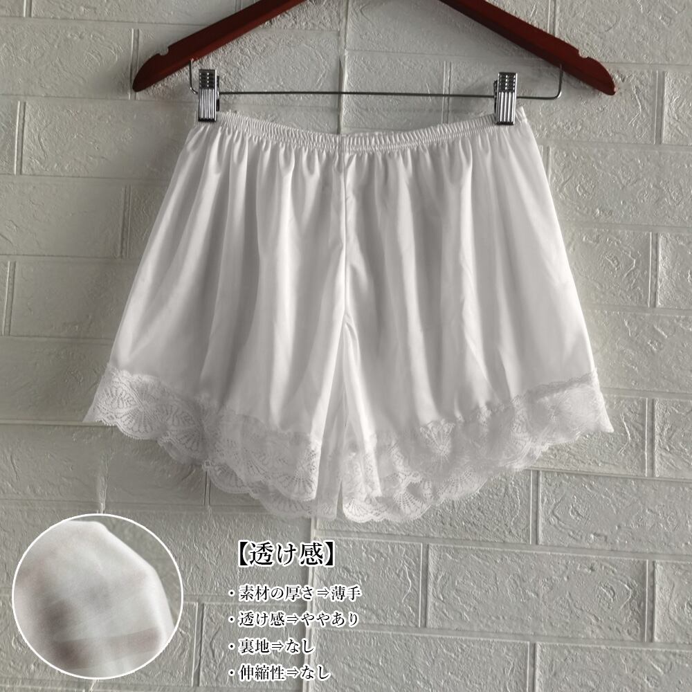 生地はさらっと滑らかな触り心地があり、裾部分に繊細なレース付きペチコートパンツ