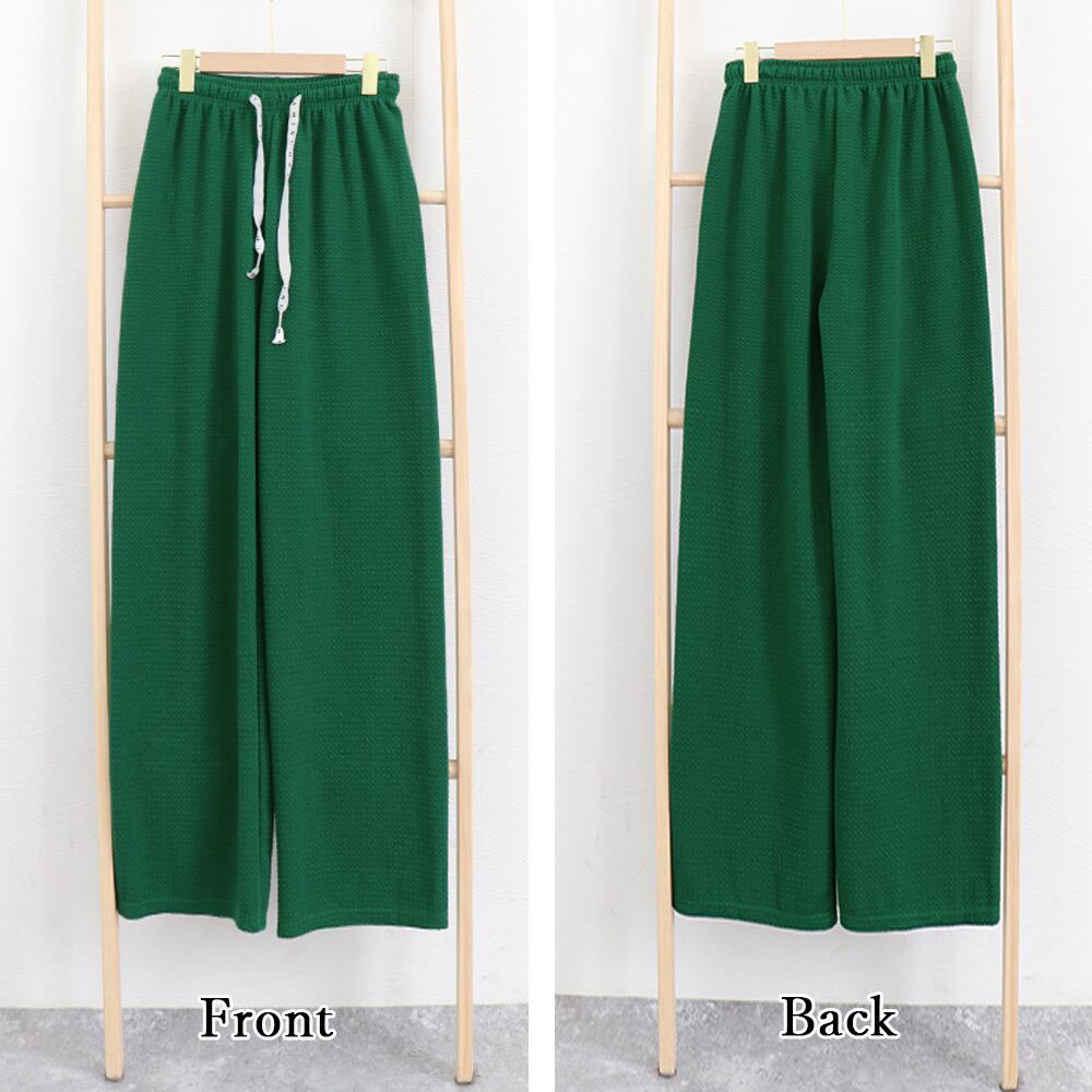 脚のラインを拾わないワイドシルエットで、体型カバーもしてくれる
