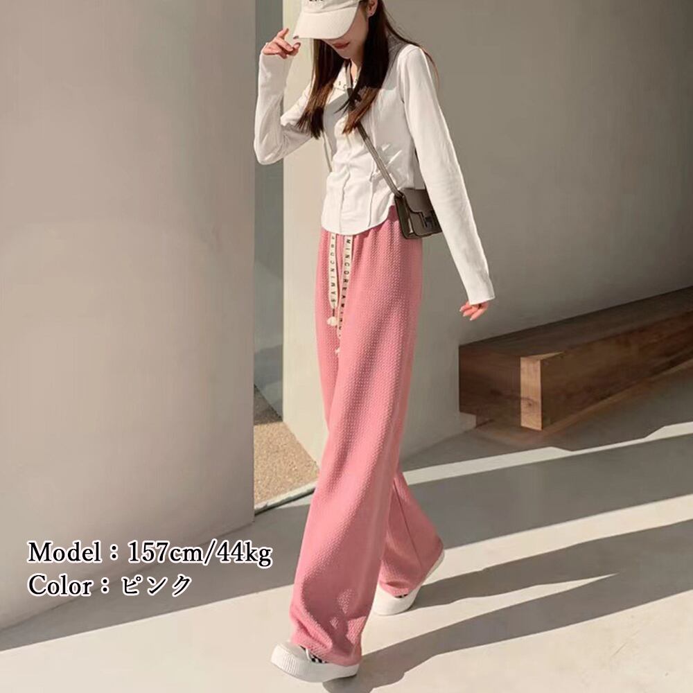 楽ちんワイドパンツ ロゴ紐 韓国風 おしゃれ 脚長パンツ 3D 立体感 ストレッチパンツ 春夏 カジュアル カラーパンツ