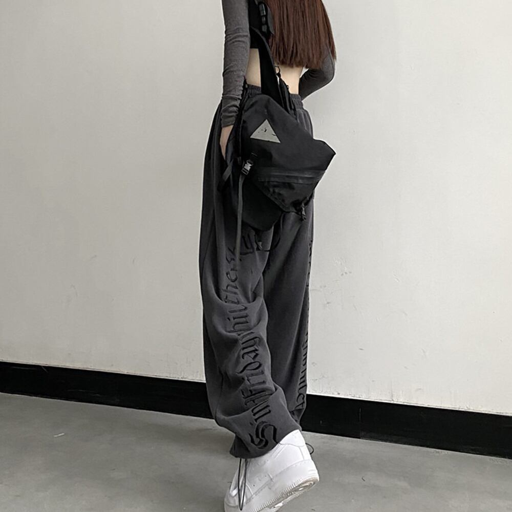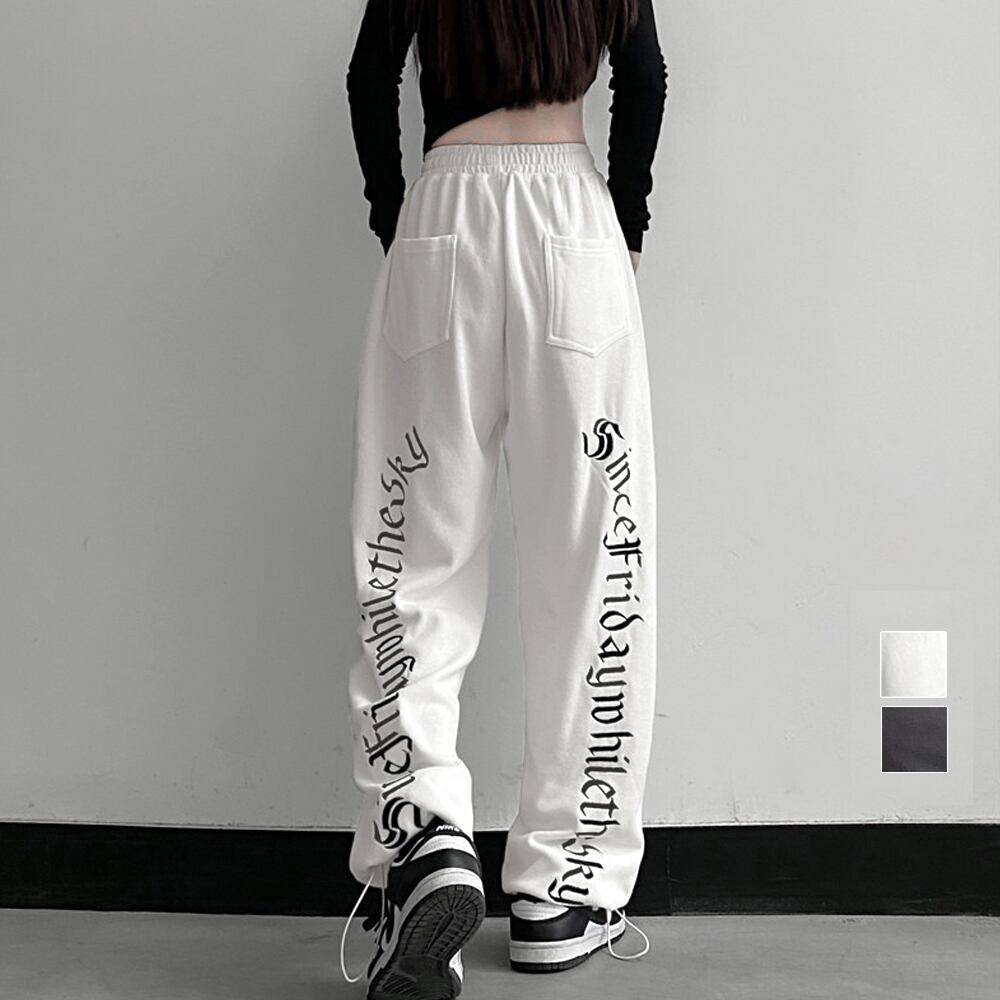 春秋夏 ストレートパンツ ウエストゴム ボトムス ヒップホップパンツ アルファベットプリントワイドパンツ 着やせ 韓国