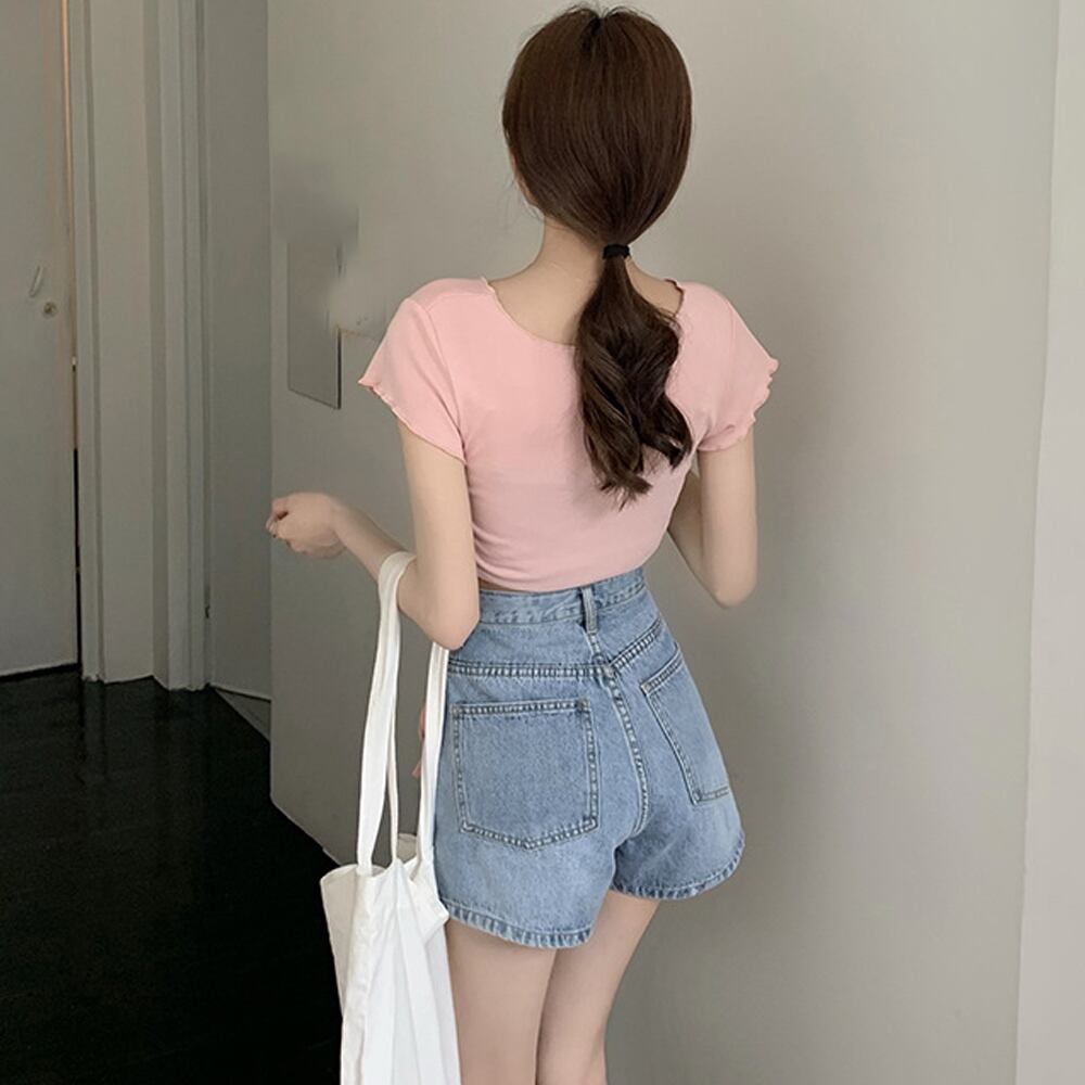 短パン ハイウエスト レディース ホットパンツ お洒落 カジュアル デニムパンツ 膝上丈 ポケット