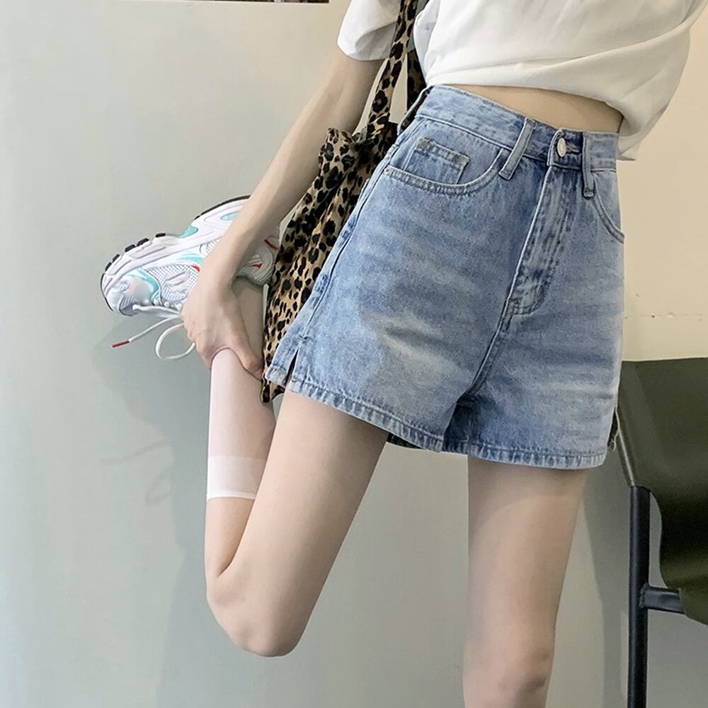 シンプルで着回し力抜群なサイドスリット入りデニムショートパンツ