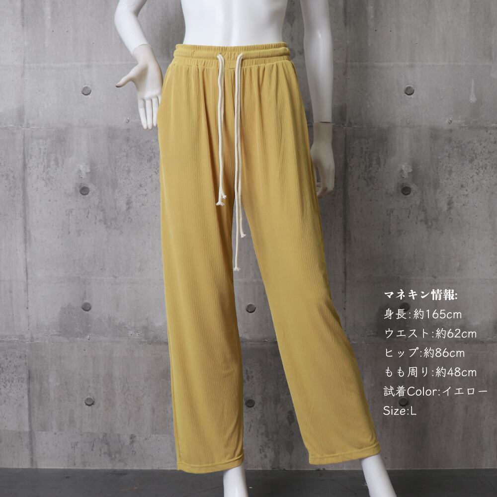 レディース ボトムス ストレートパンツ ウエストゴム 脚長 無地 韓国風 楽ちん おしゃれ リラックス カジュアル