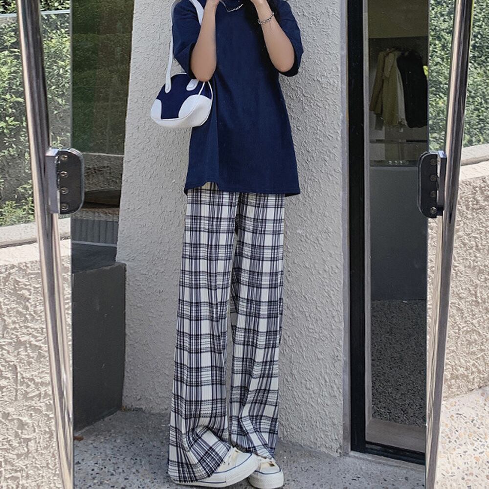 セミワイドパンツ チェック柄 春夏秋