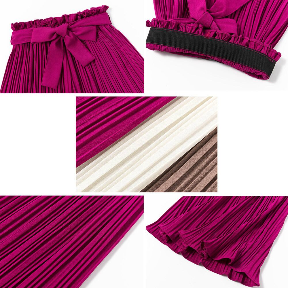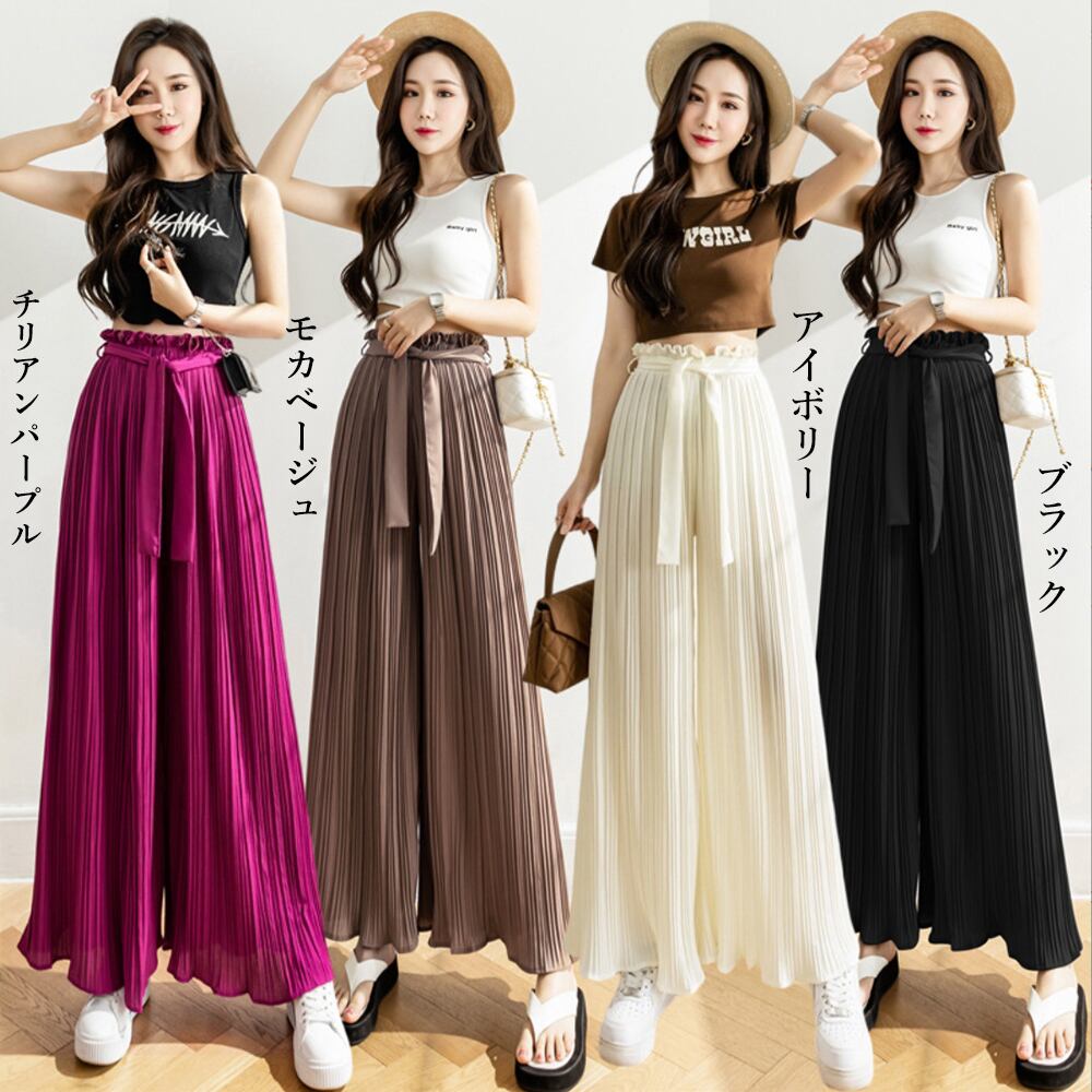 サラッと軽やかなシフォン素材がふわっと広がるプリーツワイドパンツ