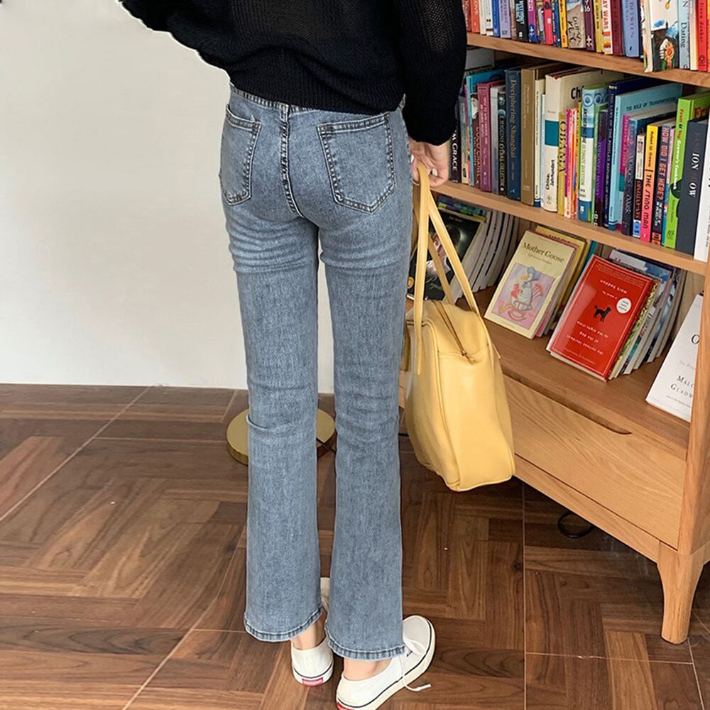 アンクル丈のセミフレアデザインは足首に抜け感をプラスしてくれるスキニーデニムパンツです