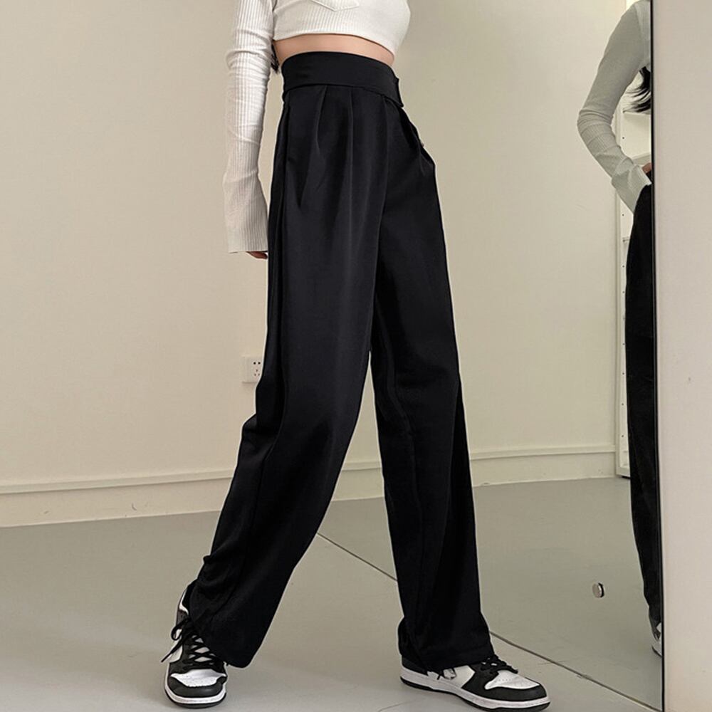 おしゃれ ハイウエスト タックパンツ マジックテープ カジュアル ロングパンツ 脚長ボトムス 春夏秋 スーツパンツ 薄手