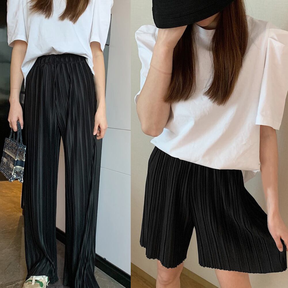 プリーツワイドパンツ2枚セット冷感タッチ