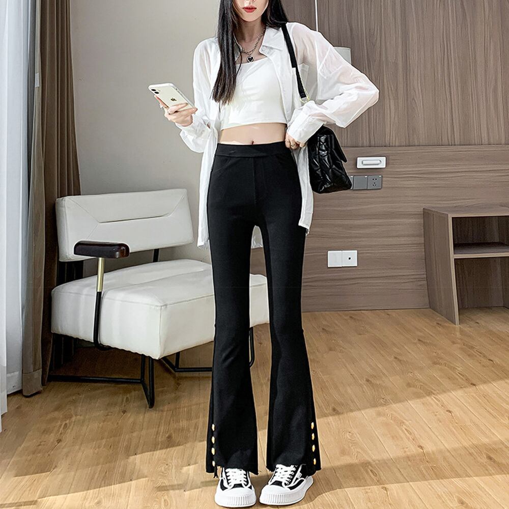 レディース フレアパンツ 切りっぱなし ストリート 着やせ ジーパン ゴールドボタン 美脚 ロングパンツ おしゃれ