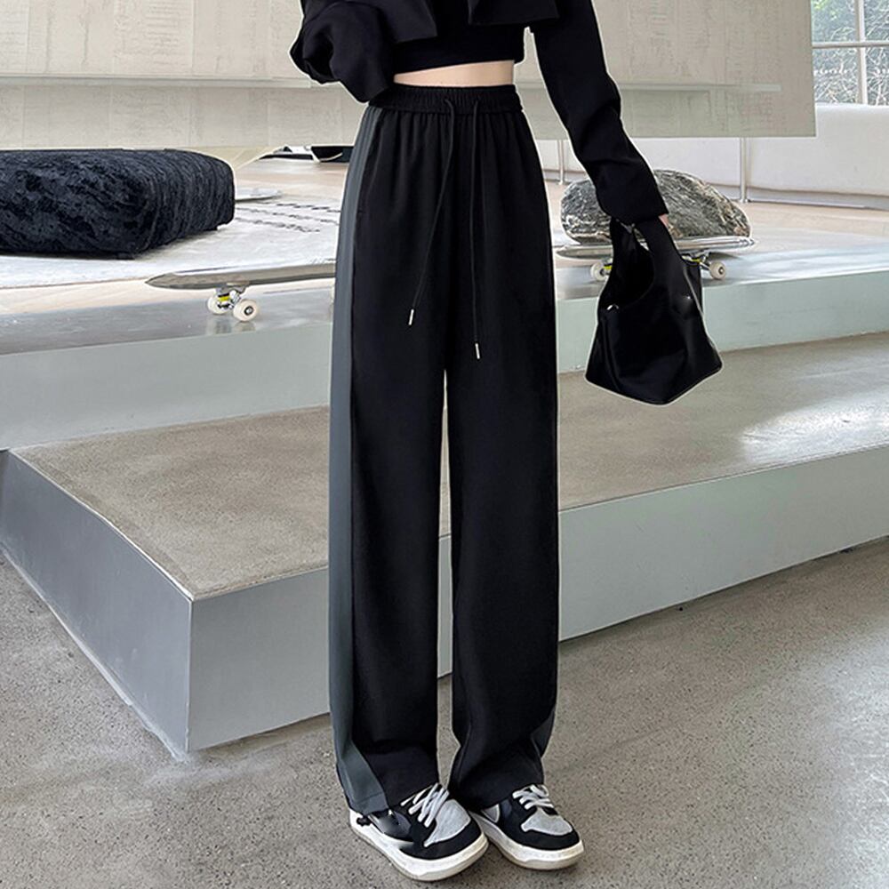 レディースボトムス イージー ストレートパンツ ハイウエスト ロングパンツ 部屋着運動着 体型カバー ライン入りズボン