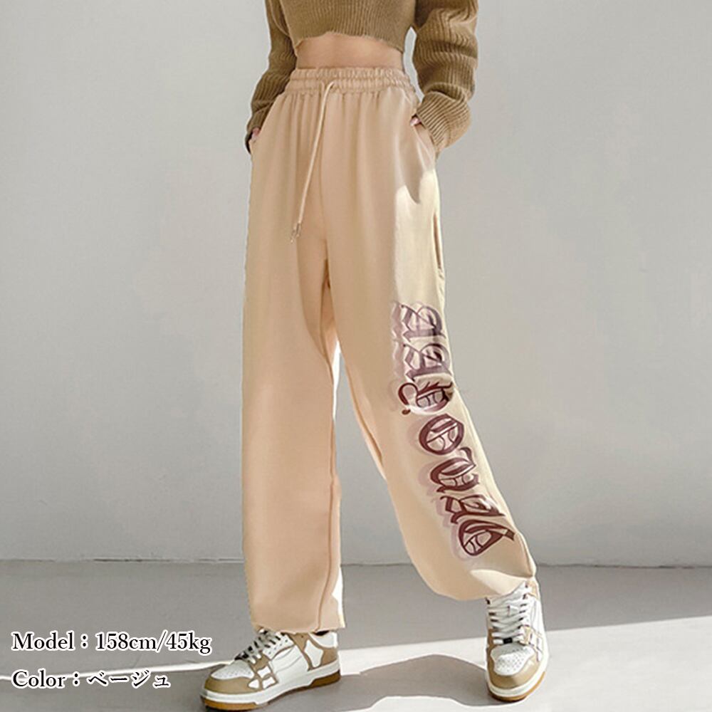 カジュアル ゆったり ロゴ ジャージパンツ ウエストゴム イージーパンツ 春秋夏 ダンス衣装 おしゃれ 楽ちんパンツ美脚