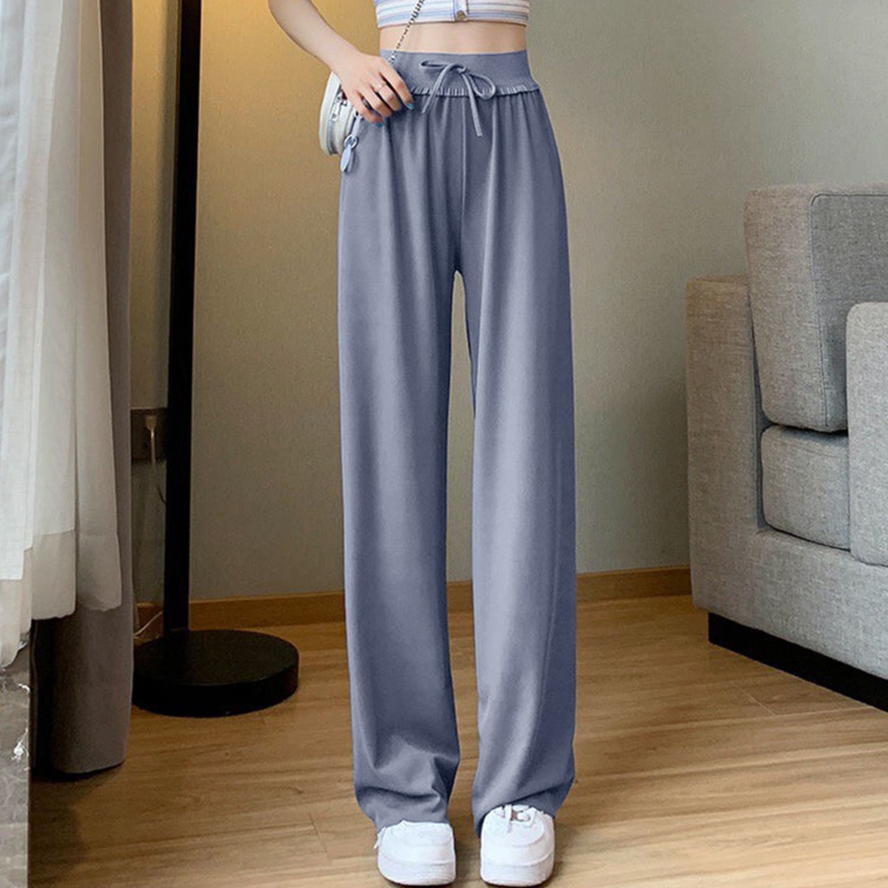 レディース ハイウエスト リラックスパンツ ウエストゴム ストレートパンツ カジュアルサマーパンツ 通勤通学ボトムス春夏